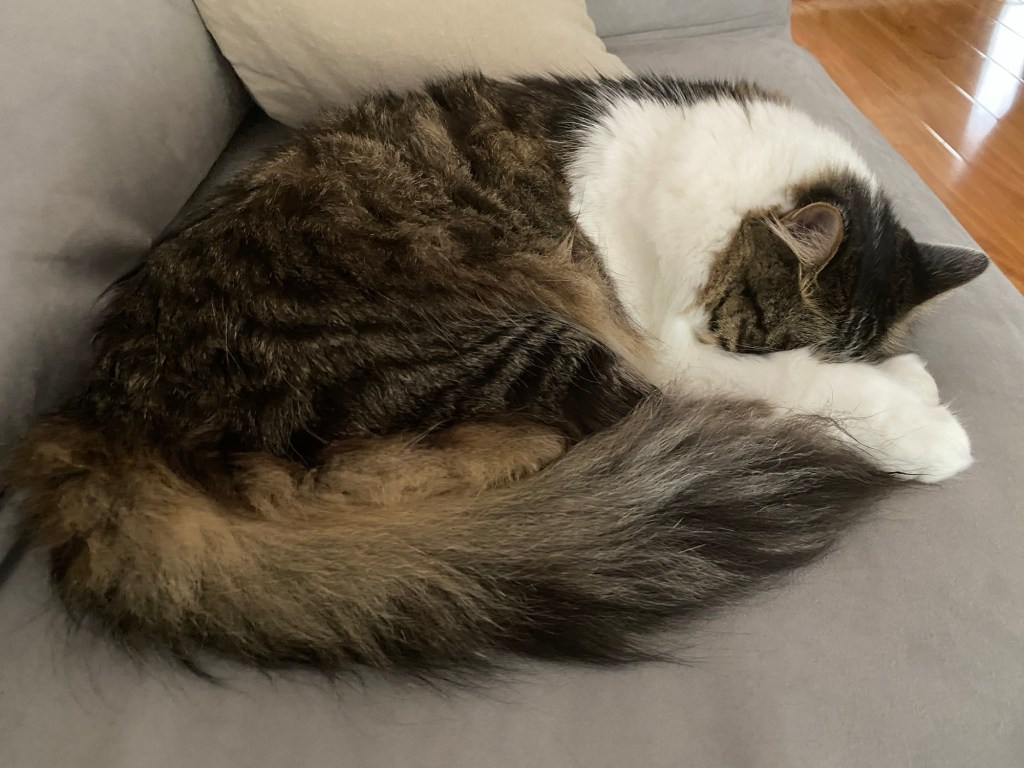 At the start, I indulged him and didn’t understand when none of his beds fit him. I thought they were the wrong size until the vet told me he was overweight. He’s lost two kilos since I put him on a diet but it’s no easy task keeping him away from food.